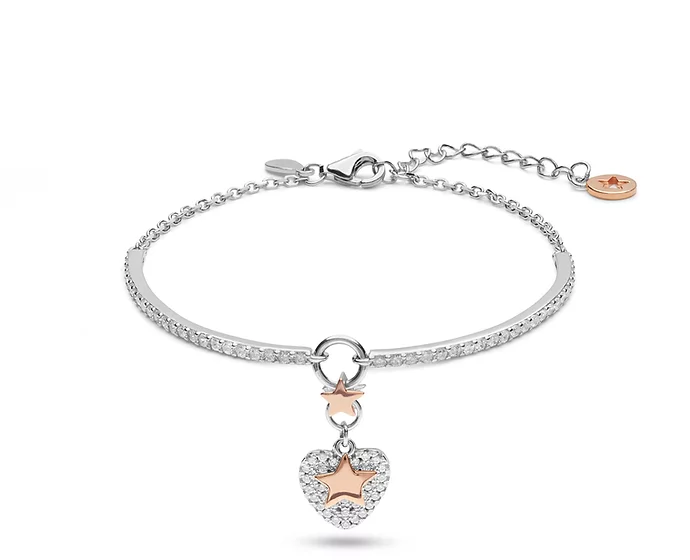 Scopri il dolce e prezioso bracciale della Collezione che si distingue per il design particolarmente romantico. Dedicato all’ amore, affinchè sia illuminato e protetto dalla buona stella di Comete. Bracciale semitennis dal design fresco e contemporaneo caratterizzato dall’elegante e delicato simbolo del quadrifoglio realizzato in Argento 925% con trattamento di doratura rosè e zirconi bianchi. La lunghezza è di 18 cm riducibile grazie agli anelli di messa a misura.